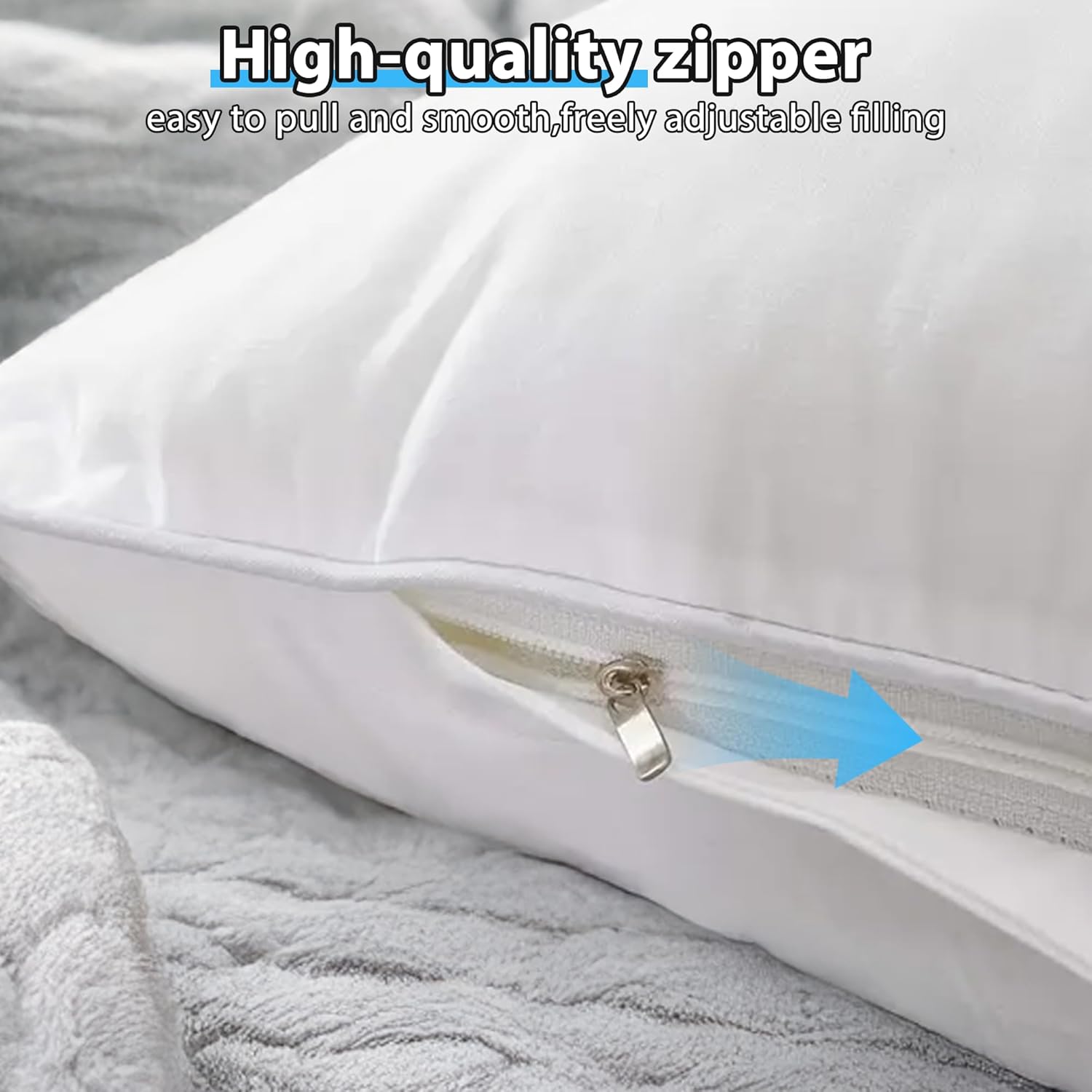 4pcs High Quality Fluffy Square Pillow Cores with zipper - Plump White Stuffer Cushion Inserts,Ideal for Sofa, Bed & Patio Cushion Fillings, Perfect for Outdoor Camping and Travel.Easy to Clean, Machine Washable.Great Family Gift Choice