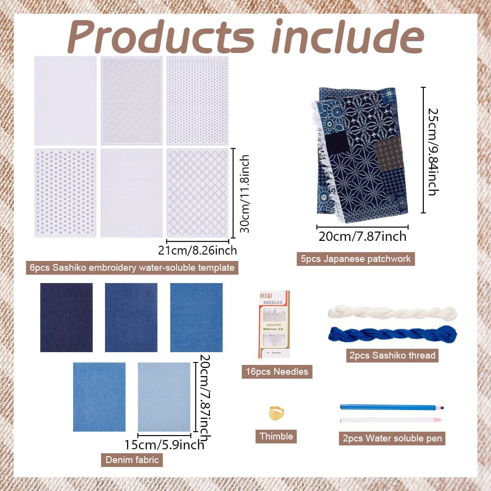| Color | Slow Stitching Sashiko Boro Mending Patchwork Kit |