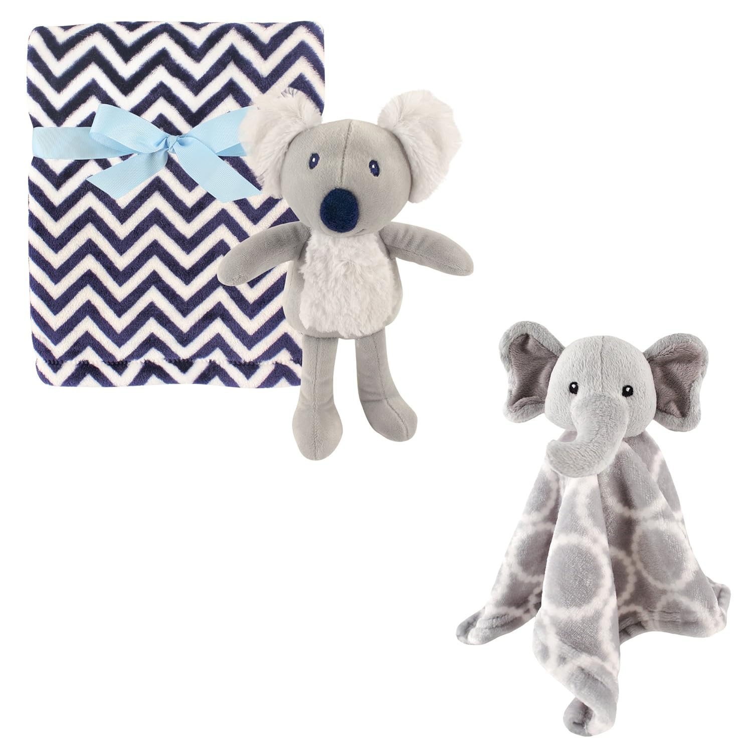 Hudson Baby bundles save families money by offering lower prices on everyday baby essentials when buying in bulk purchases. Hudson Baby's plush blanket with security blanket & toy features a warm and cozy plush blanket, a cute animal security blanket & 3D animal toy your baby is sure to fall in love with. The bundle is made of soft and gentle fabric that will comfort your one. The larger blanket is a multi-purpose baby blanket and the security blanket and plush toy comes with an adorable, detailed animal character.