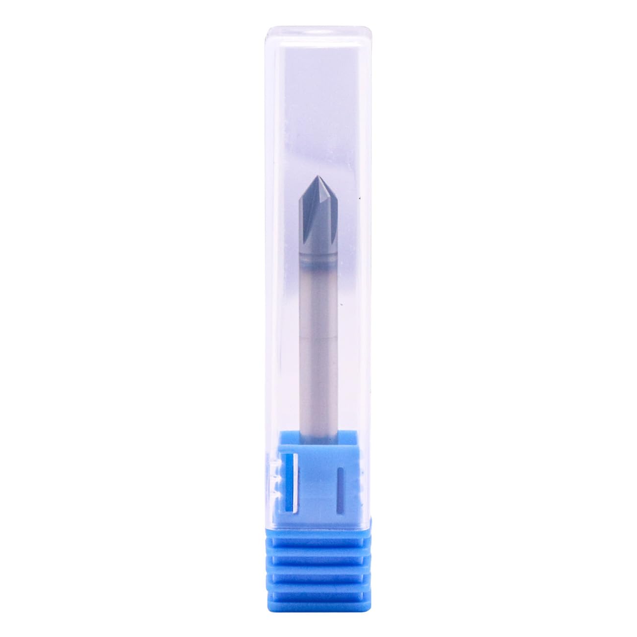 Specifications:4 Flute, Single End,Solid Carbide Chamfer End Mill With 90ยฐ Chamfer Angle, AlTiN Coated 3/16" Cutting Diameter x 3/16" Shank Diameter x 2" Overall LengthPackage Included:5pcs 3/16" 4 Flute 90 Degree Carbide Chamfer MillsFeatures:AlTiN Coated: It is able to provide high wear resistance, lubricity, exceptional oxidation resistance, extreme hardness, and excellent abrasive wear resistance. It has higher reliability in dry operations, heat resistance, hard machining, and the resistance can be reduced.Crafted from micrograin carbide, this end mill offers exceptional toughness, durability, and machinability, delivering outstanding performance and great value for its price.Precision ground using the highest quality grinding wheels. High strength and hardness, abrasion resistant, practical, easy to use and durable in use.Application:Chamfer Mill Bits are used for spotting, chamfer milling, deburring, engraving, etc.Apply to wood, steel, Common Steel, stainless steel, alloy steel, carbon steel, cast iron, Copper Alloy, etc.