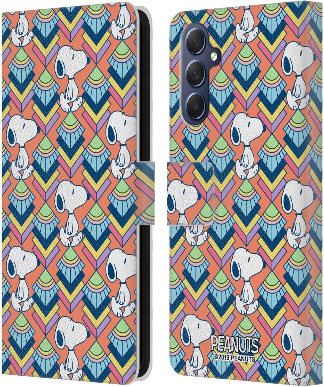 Head Case Designs Officially Licensed Peanuts Orange Pattern Snoopy Deco Dreams Leather Wallet Case Compatible with Samsung Galaxy M54 5G