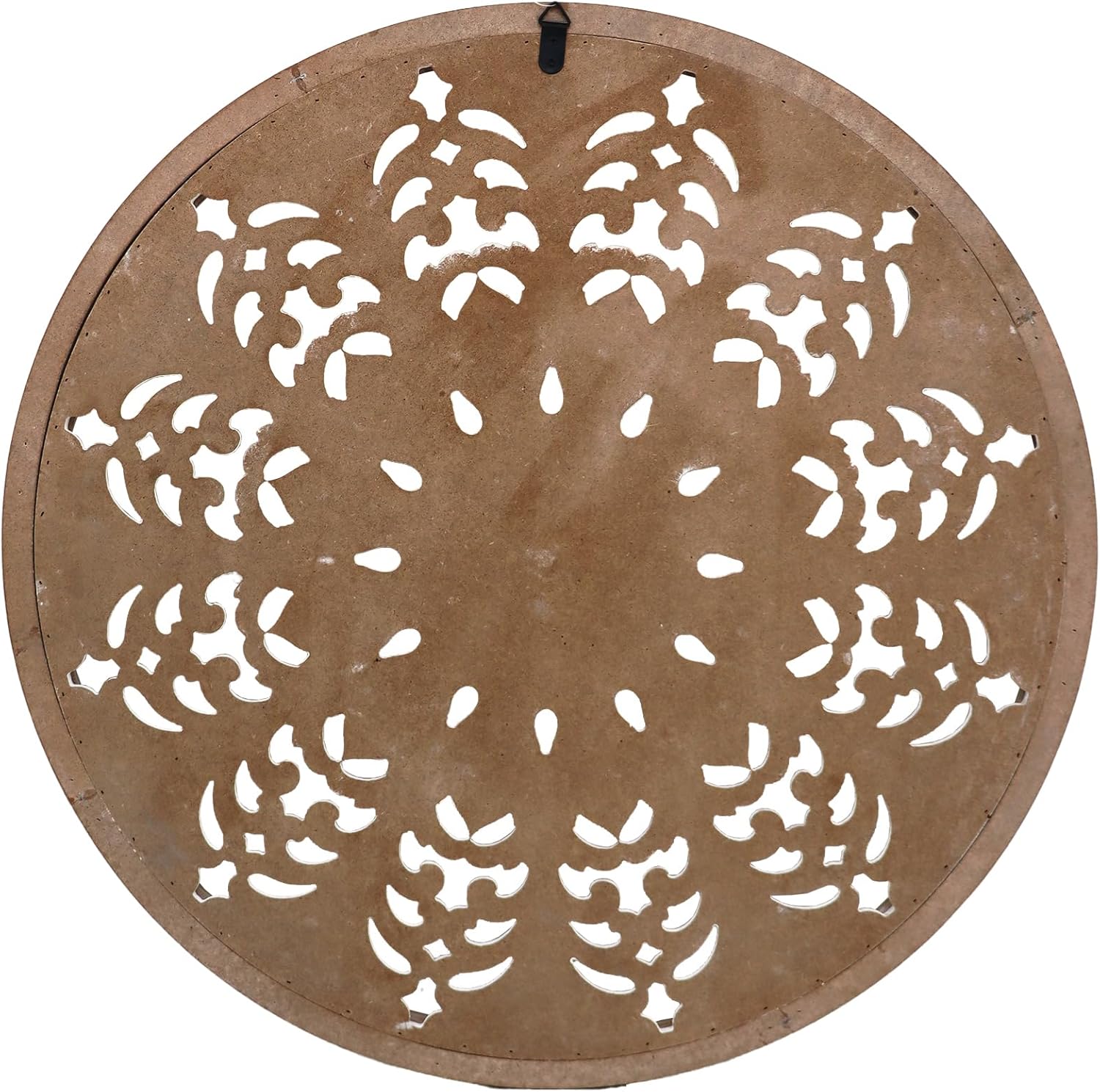 Feature: Bring a touch of rustic charm to your home decor with this Farmhouse Round Wood Floral Wall Decor. Carved with intricate bohemian patterns, this 24.8-inch wall sculpture adds a warm and inviting ambiance to any room. Crafted from high-quality wood, it boasts a natural finish that complements various interior styles. Whether you hang it in your living room, bedroom, or entryway, this round wall art piece will undoubtedly become a focal point, captivating your guests with its artistic flair. Elevate your space with this stunning wall decor that seamlessly blends vintage inspiration with contemporary design. Product Specification: Overall Size: 24.8'' x 0.8'' x 24.8'' Weight: 3.74 LBS Material: MDF with veneer, Solid Wood Application:Living Room, Bedroom, Kitchen, Entryway
